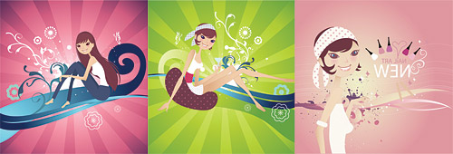 Location: Home > Vector > Vector Cartoon > 3, lovable characters fashion illustrations vector material