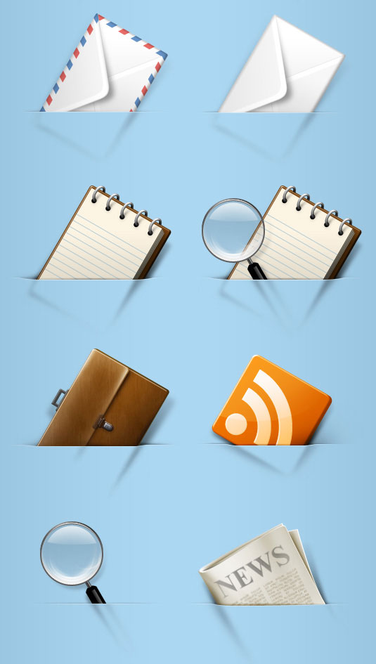 Notepad keyword search magnifying glass shoes air envelope briefcase picture frame rss Subscribe to feed the brush icon png file format video newspaper